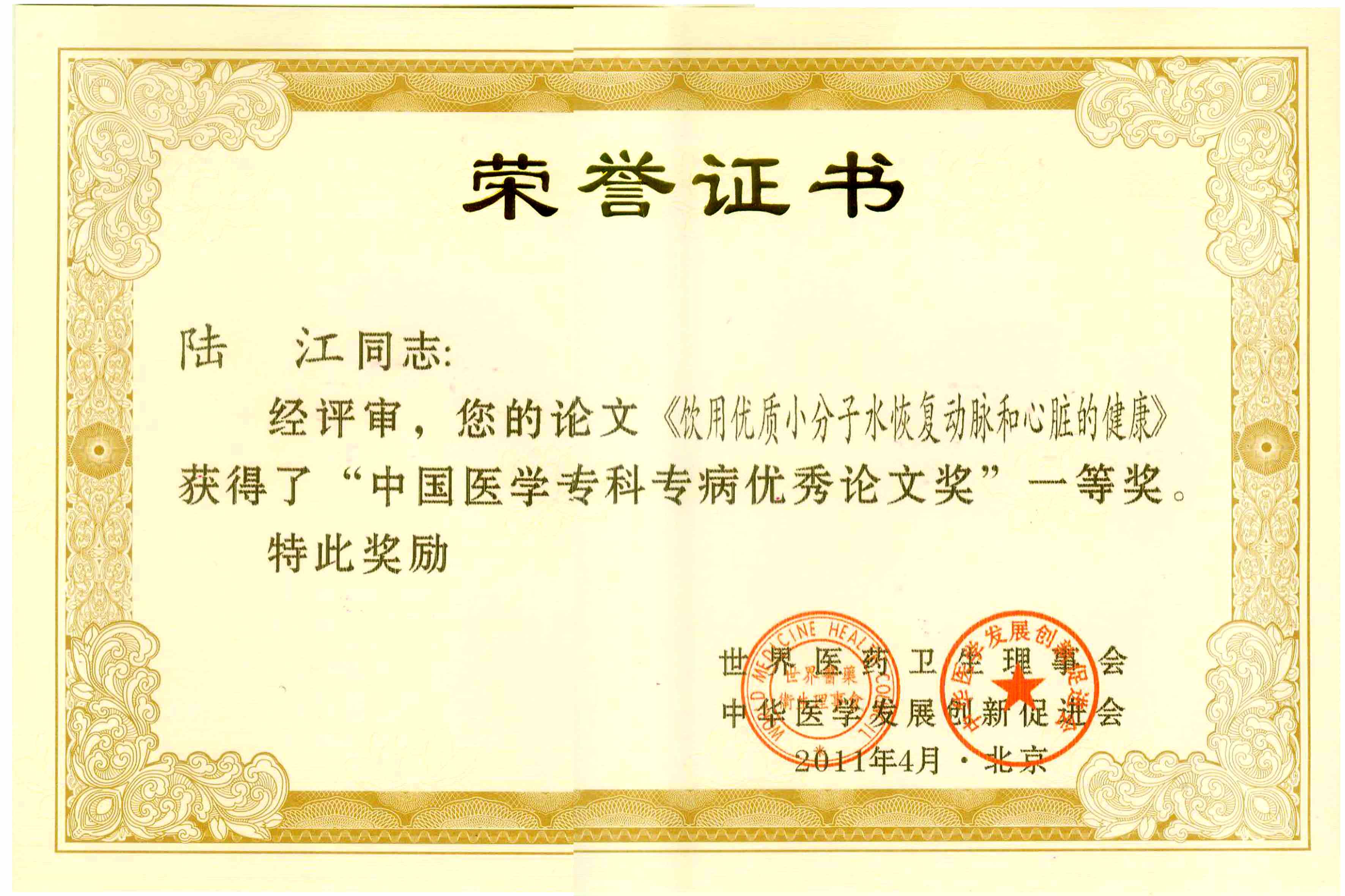 -----我是從事建筑的高工,本來沒有資格去攻克醫學難題,卻為了自身健康才扣響醫學的大門。由于我1990年患高血壓,因怕中風才研究發明了離子水瓶,我把水處理成微小分子團水,飲用后治愈了高血壓。便于1993年底送到三家省級醫院做臨床試用4個月。經北京和廣西醫學專家鑒定:"降脂降壓效果好"," 能擴大心腦動脈流量,改善心腦電圖以及微循環","對治療心腦動脈粥樣硬化、高血壓、高血脂有良好的醫療保健作用。""產品的技術性能和療效達到了同類產品的國內領先水平,經廣西醫學科學情報研究所檢索,未見國外有類似報道。"中國醫學科學院張正國教授從美國國立醫學圖書館數據庫存Medline檢索英俄文資料,均未見類似報告。2000年上市后,我為了對消費者負責而繼續觀察研究,一直通過《信譽卡》和《質量跟蹤調查書》向患者承諾療效,請用戶使用6個月后反饋效果。和脂壓患者飲用2至5個月內,消除癥狀,停服藥物,血壓正常;冠心病患者飲用3~5個月逐漸減輕至消除心絞痛、房顫等癥狀,不再服藥,飲用1年左右心電圖正常,經冠脈造影掃描無明顯狹窄,表明冠心病痊愈。大量患者還反映許多衰弱器官被修復,讓前列腺增生、慢性咽喉炎、慢性氣管炎、支氣管炎、慢性胃炎、腸炎和膽囊炎等不藥而愈;2型糖尿病患者是因為胰島衰弱致病,飲用該水半年至一年,逐漸減藥至停藥,血糖尿糖正常,真正治愈2型糖尿病。中風后遺癥患者飲用六七個月,可逐漸減輕至消除肢體和語言障礙,表明飲用該水能讓壽命很長的神經元細胞逐漸修復,奇跡般地恢復肢體和語言功能。飲用后還使胸腺和脾臟兩個重要的免疫器官被修復和增強,產生免疫細胞多,提高了免疫力,使人不生病或少生病。自此, 飲用微小分子團水創造了攻克冠心病、高(低)血壓和糖尿病三大醫學難題的奇跡。人們對此感到不可思議,但實踐是檢驗真理的唯一標準。